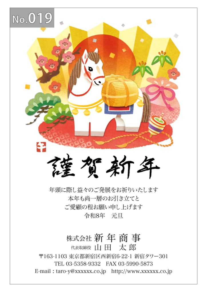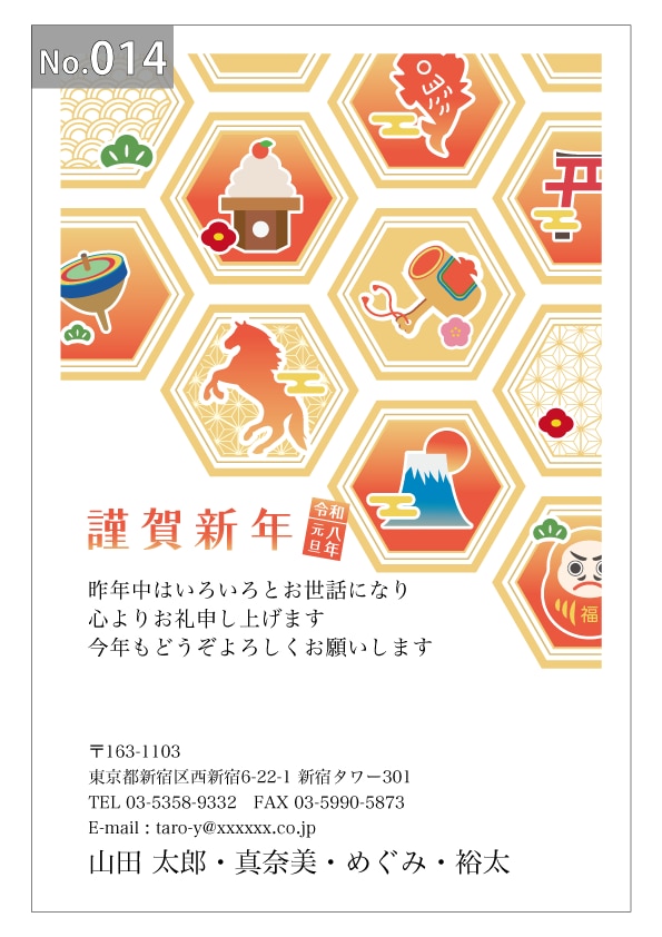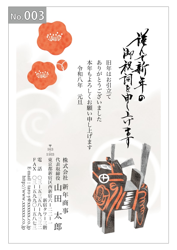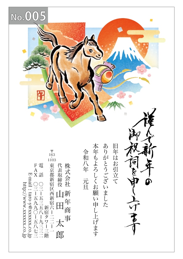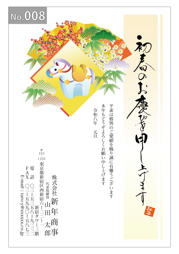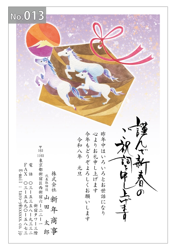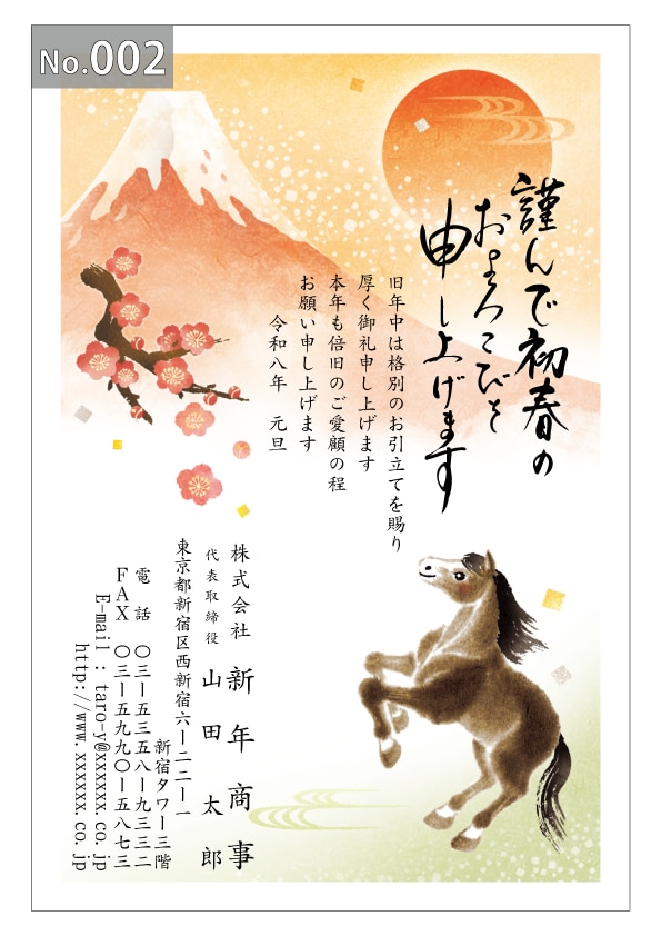 幅広いデザインを豊富にラインナップ。企業・法人・会社用に使えるビジネス向けのフォーマルなデザインから、個人で使えるファンシーなデザインまで、95種のカラー年賀状デザインをご用意しました。