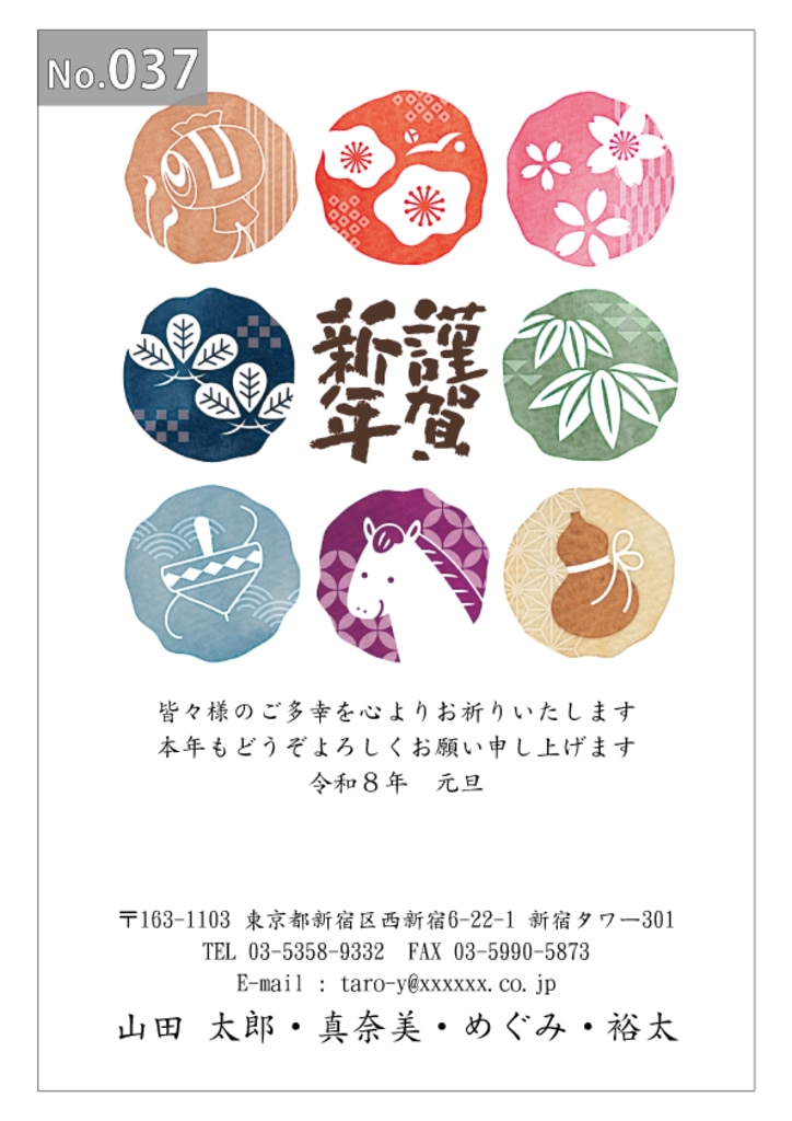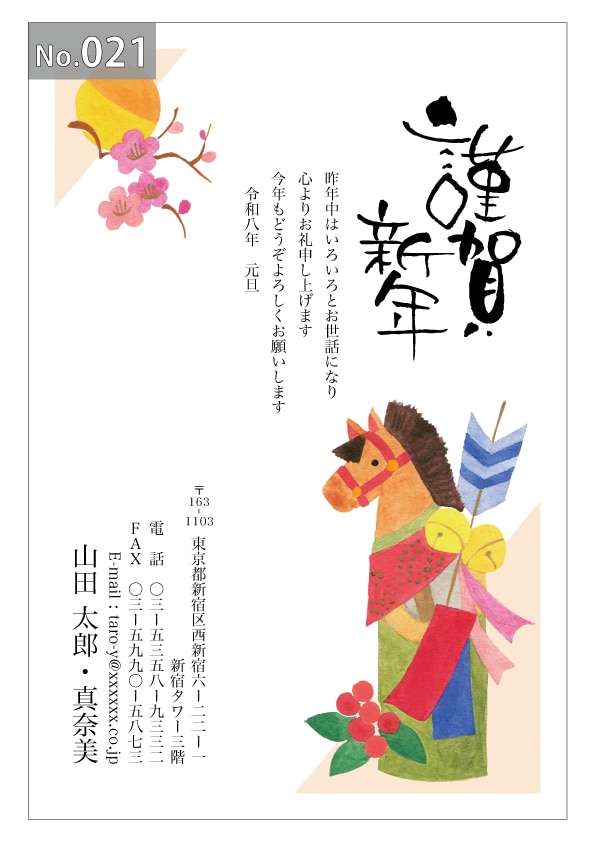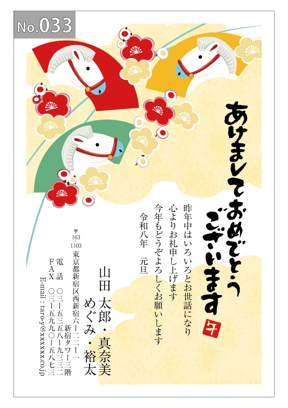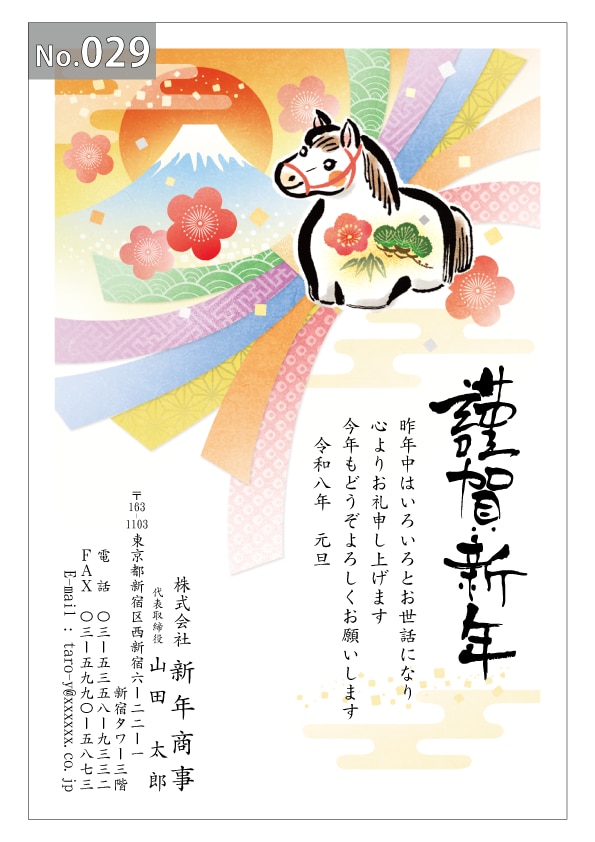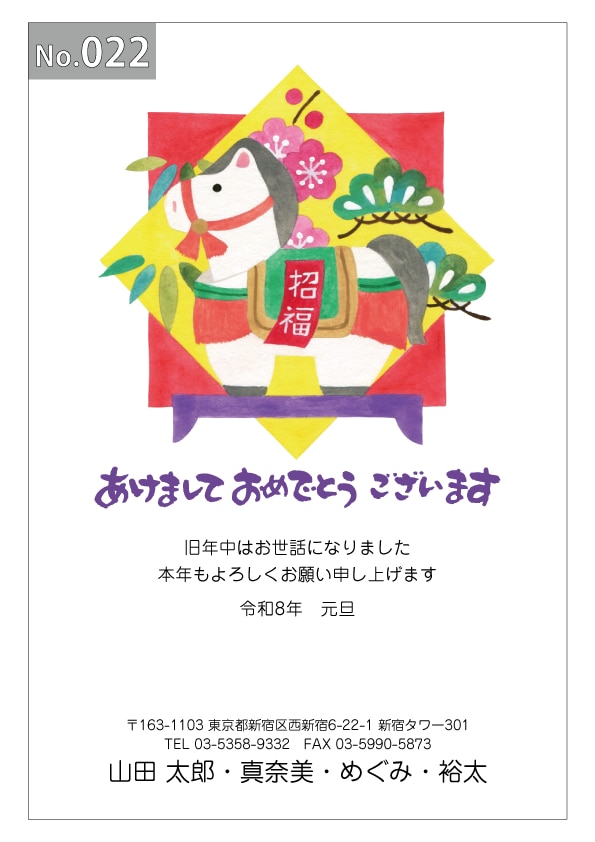 幅広いデザインを豊富にラインナップ。企業・法人・会社用に使えるビジネス向けのフォーマルなデザインから、個人で使えるファンシーなデザインまで、95種のカラー年賀状デザインをご用意しました。