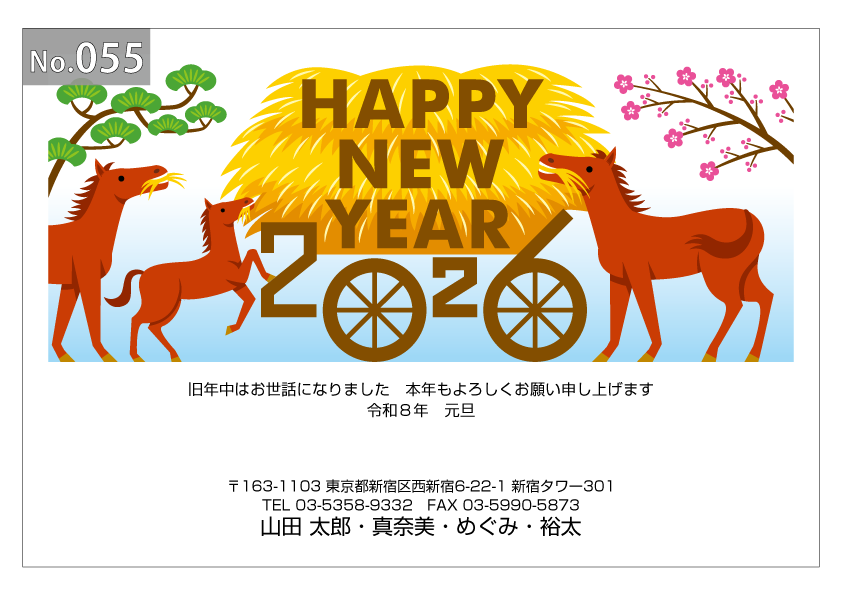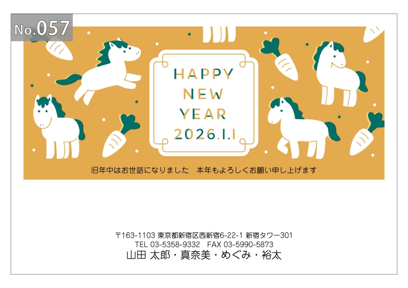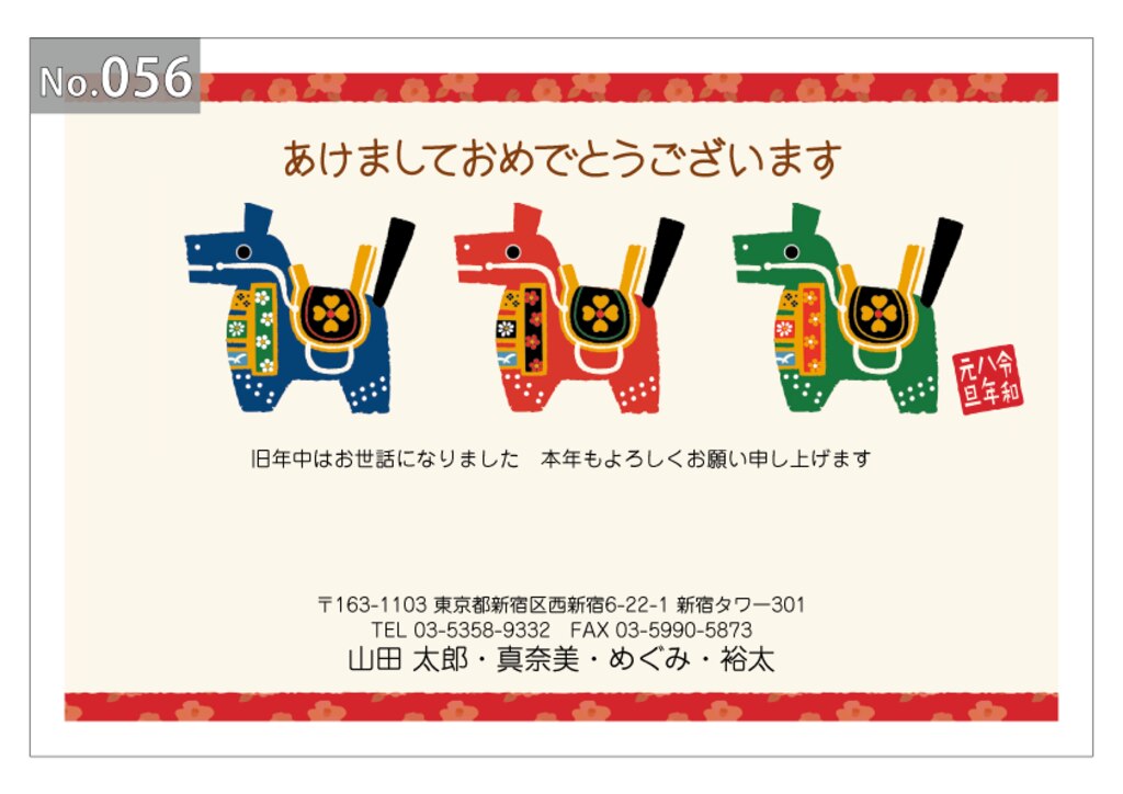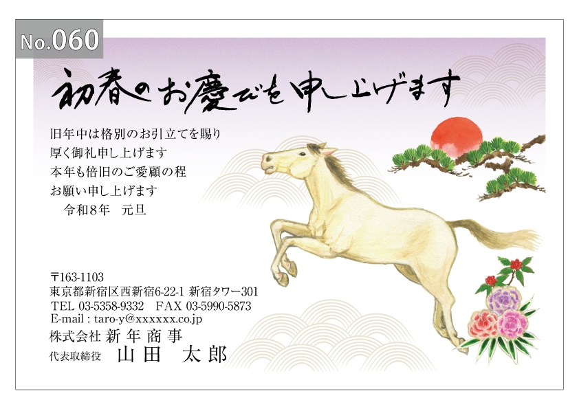 幅広いデザインを豊富にラインナップ。企業・法人・会社用に使えるビジネス向けのフォーマルなデザインから、個人で使えるファンシーなデザインまで、95種のカラー年賀状デザインをご用意しました。