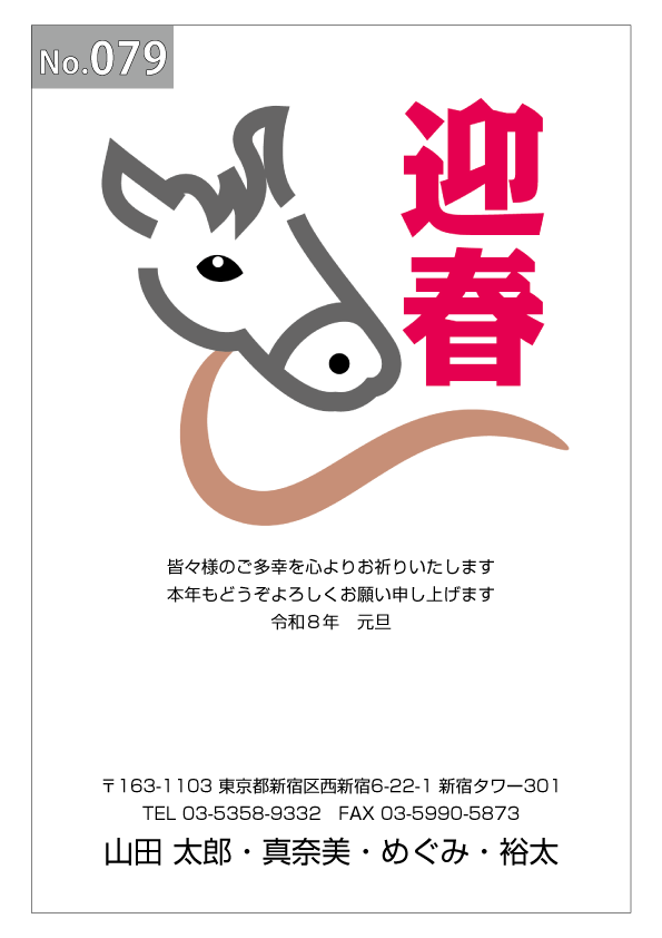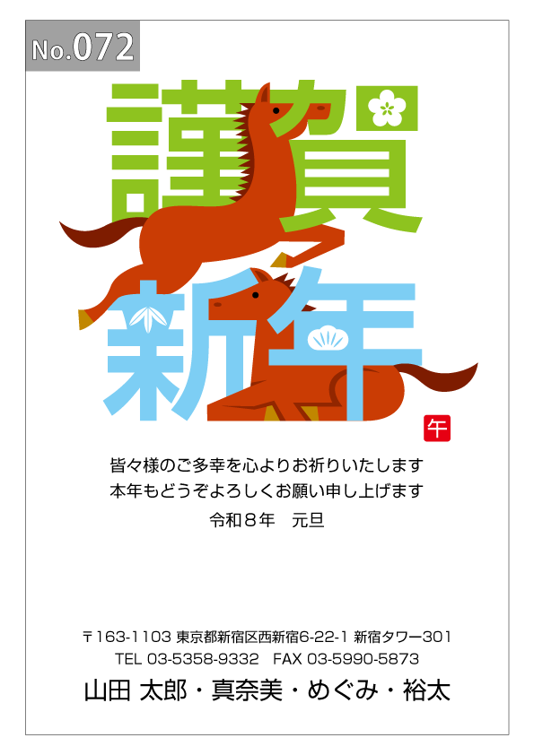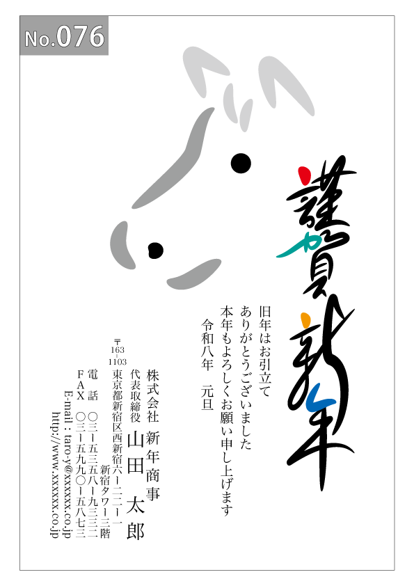 幅広いデザインを豊富にラインナップ。企業・法人・会社用に使えるビジネス向けのフォーマルなデザインから、個人で使えるファンシーなデザインまで、95種のカラー年賀状デザインをご用意しました。