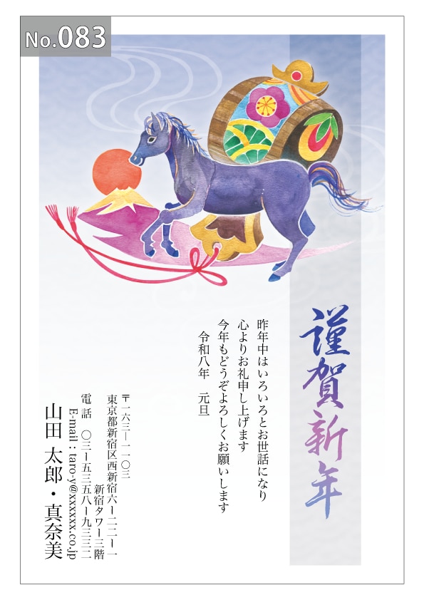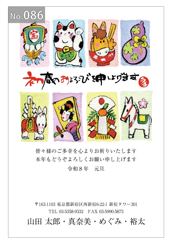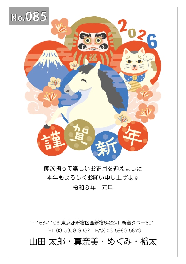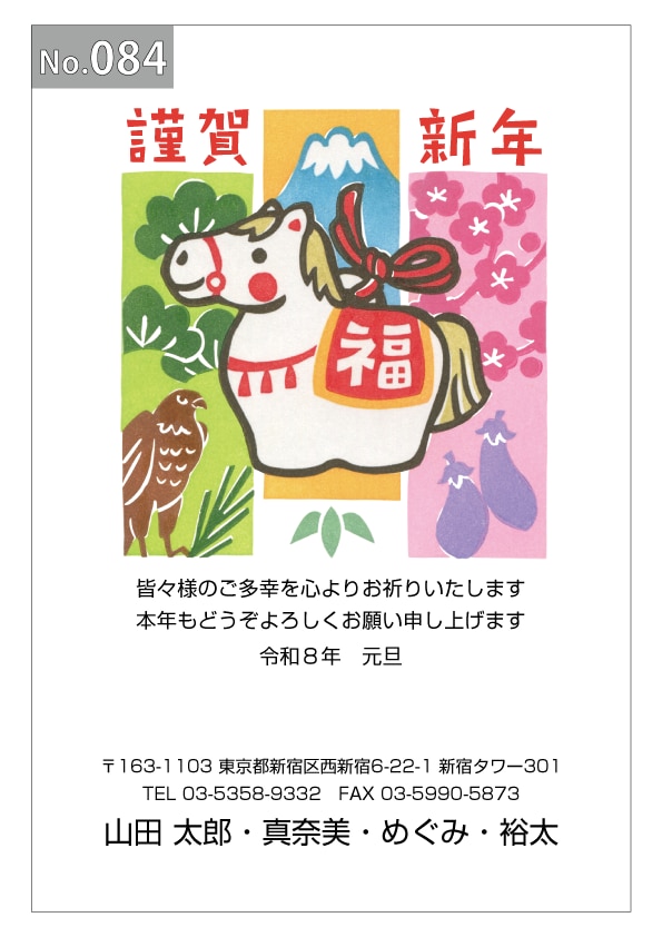 幅広いデザインを豊富にラインナップ。企業・法人・会社用に使えるビジネス向けのフォーマルなデザインから、個人で使えるファンシーなデザインまで、95種のカラー年賀状デザインをご用意しました。